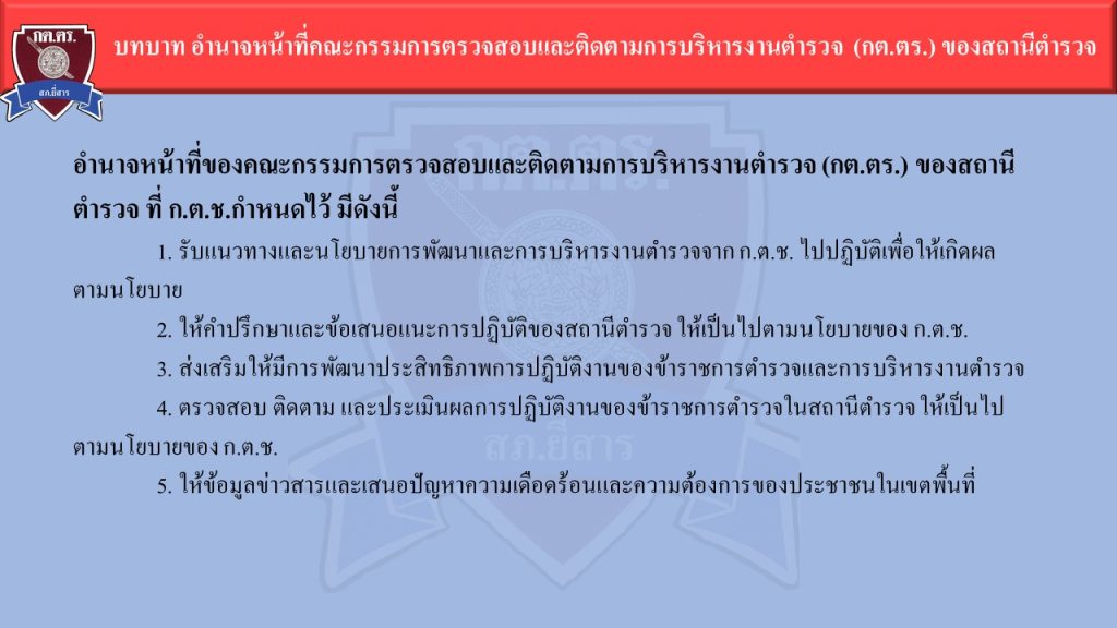 บทบาท อำนาจหน้าที่คณะกรรมการตรวจสอบและติดตามการบริหารงานตำรวจ (กต.ตร.) ของสถานีตำรวจ